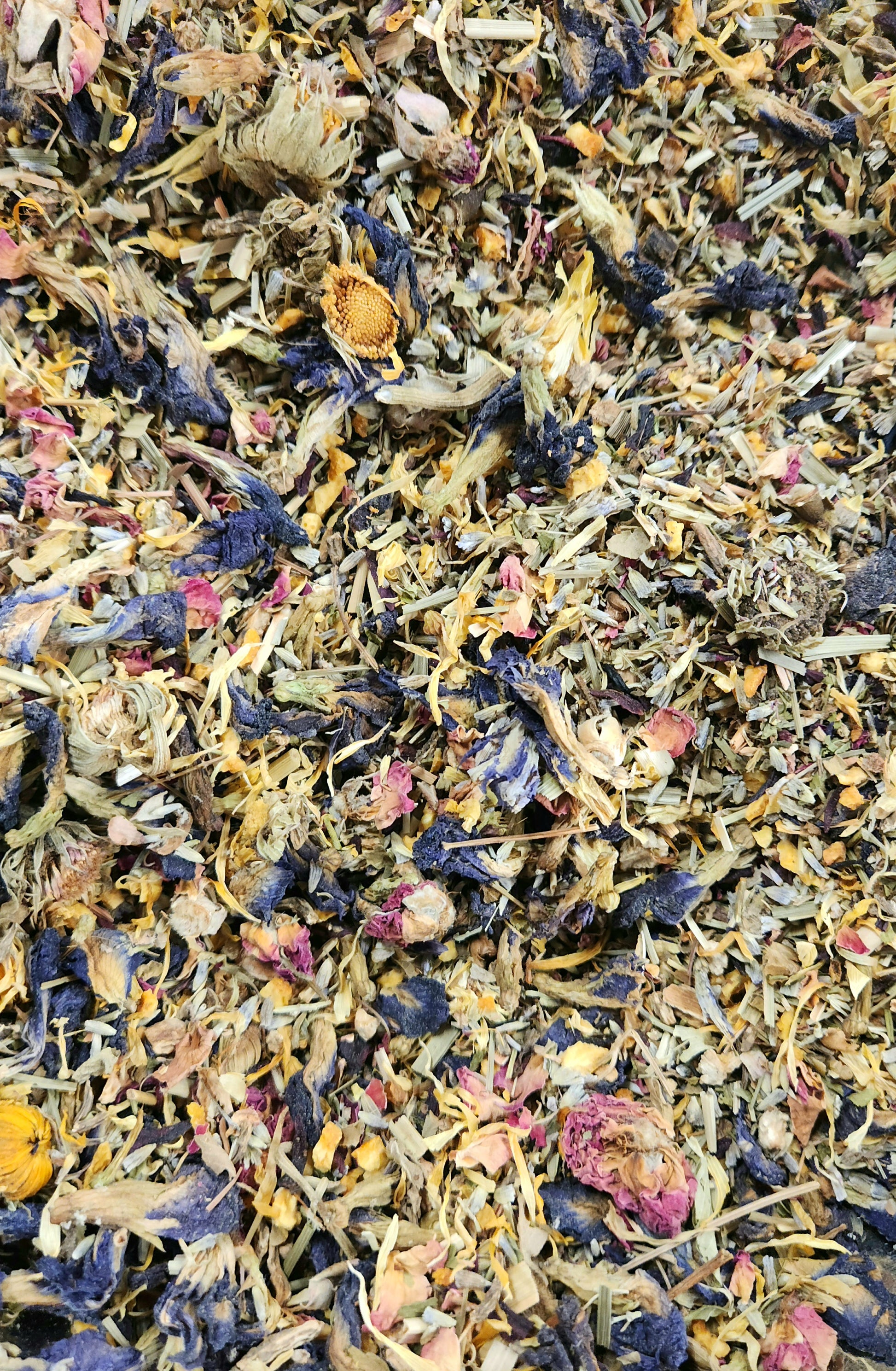 Organic Butterfly Pea Flowers, Organic Calendula Flowers, Organic Lavender Flowers, Organic Holy Basil Leaf, Organic Angelica Root, Organic Lemongrass, Organic Orange Peel, Organic Red Rose Buds & Petals, Organic Hibiscus Flowers, Organic Spearmint Leaf